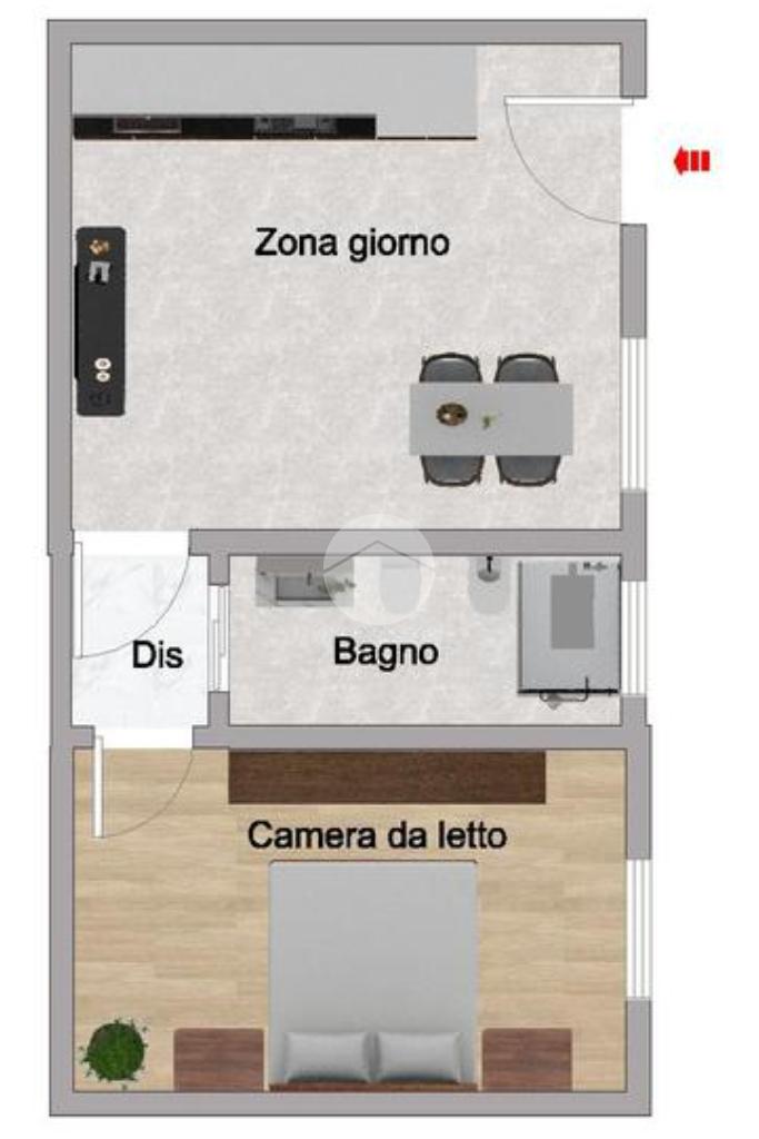 BASSANO BRESCIANO– Appartamento bilocale al piano terra - Zona giorno open space – una camera da letto matrimoniale – Bagno.