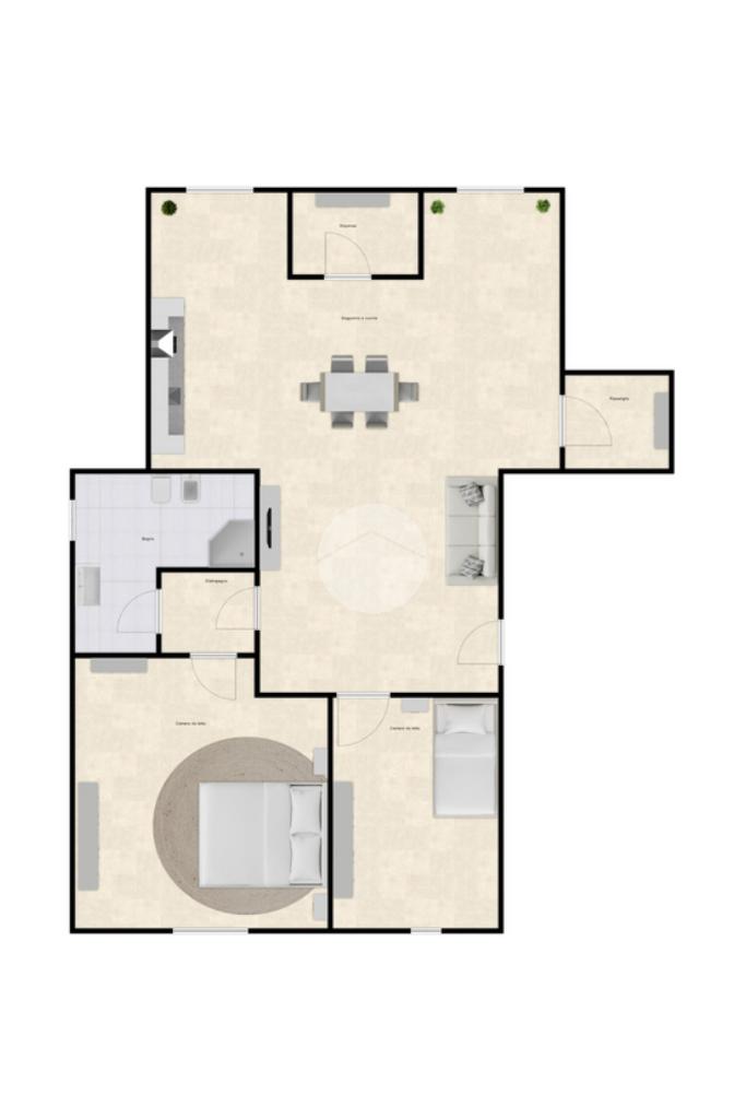 L'appartamento si presenterà composto da: comoda zona giorno open space suddivisa in angolo cottura, zona pranzo, comodo angolo relax arredabile in base alle proprie esigenze e pratico ripostiglio.