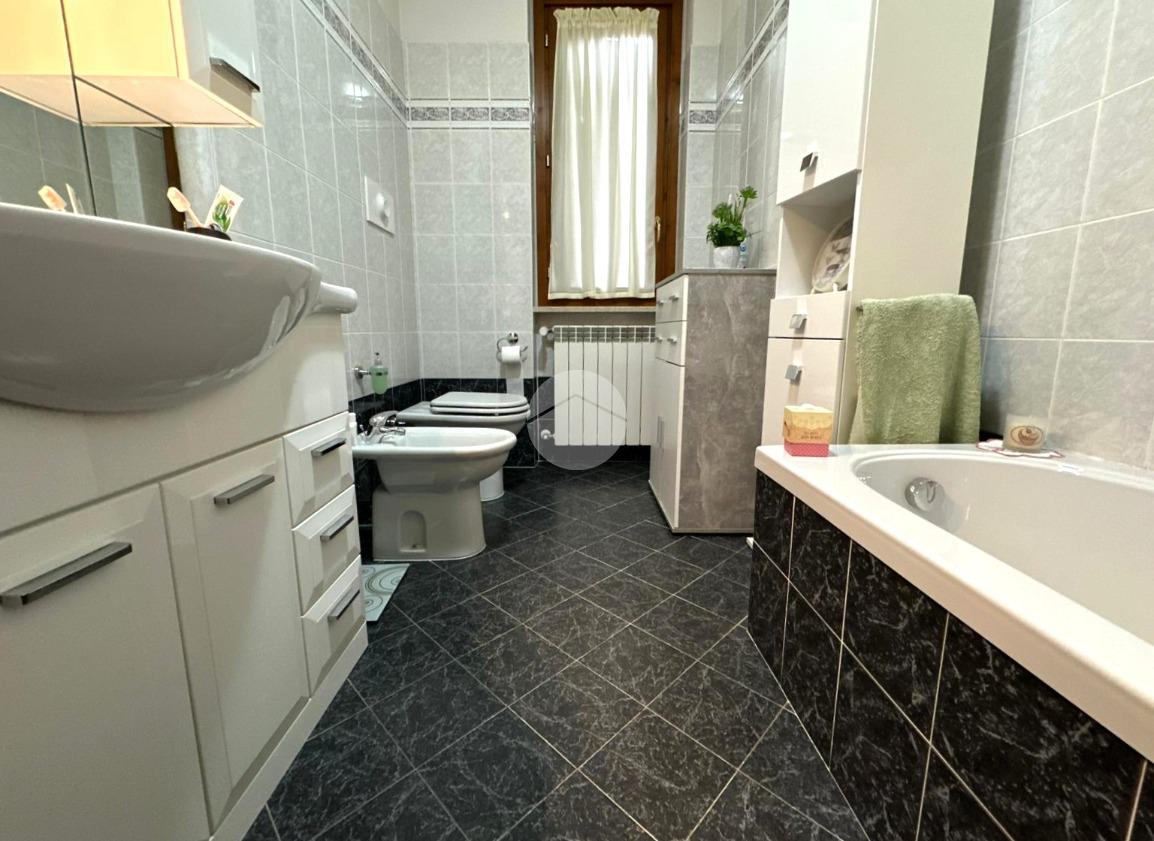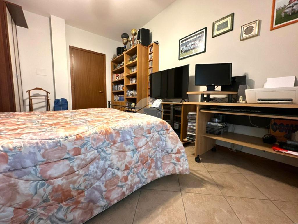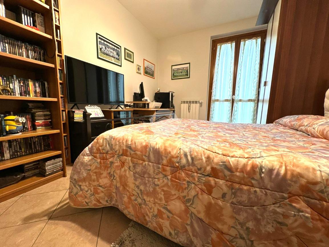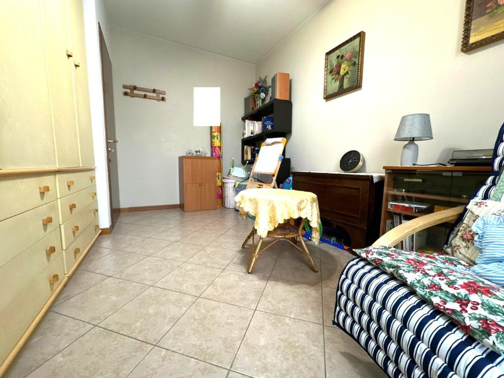 L’ appartamento gode del pratico box auto doppio in larghezza e della spaziosa cantina.