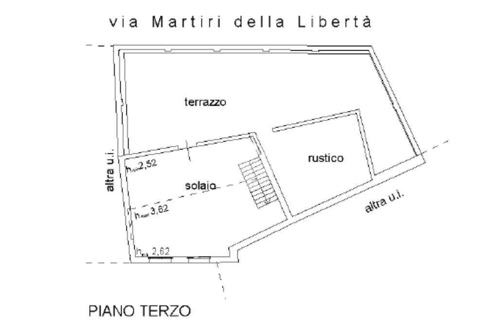 Attraverso le scale si accede al terzo e ultimo piano composto da: ampio solaio mansardato utilizzato come zona deposito ma con